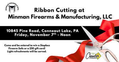 Join us for the Ribbon Cutting and Grand Opening of Minman Firearms and Manufacturing in Conneaut Lake - they are looking forward to having you stop in and check their new space out!